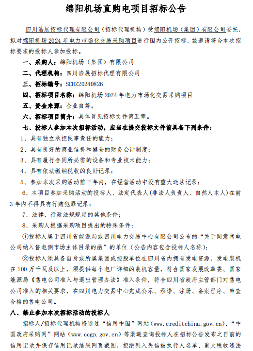 綿陽機(jī)場直購電項(xiàng)目招標(biāo)公告